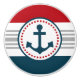 Nautical design with anchor decoration in round shape on blue, red, grey and white striped background