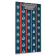 Nautical design with sailing boat and compass decoration on red, blue and white striped background