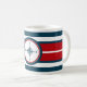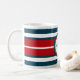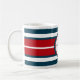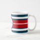 Nautical design with compass decoration in round shape on red, blue and white striped background