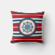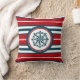 Nautical design with compass decoration in round shape on red, blue and white striped background
