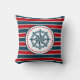 Nautical design with compass decoration in round shape with stars on red, blue and white striped background