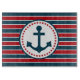 Nautical design with anchor decoration in round shape with stars on red, blue and white striped background