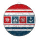 Nautical design with sailing boat, anchor, compass and sailing wheel decoration on striped background