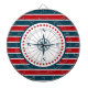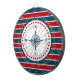 Nautical design with compass decoration in round shape with stars on red, blue and white striped background