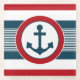 Nautical design with anchor decoration in round shape on blue, red and white striped background