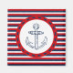 Nautical design with hand drawn anchor decoration on blue, red and white striped background