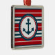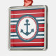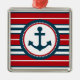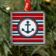 Nautical design with anchor decoration in round shape on red, blue and white striped background