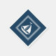 Nautical themed design with sailing boat decoration in striped squares on blue background