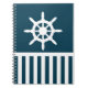 Nautical design with sailing wheel and blue and white stripes decoration on blue background