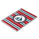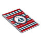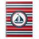 Nautical design with sailing boat decoration in round shape on red, blue and white striped background