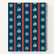 Nautical design with sailing boat and compass decoration on red, blue and white striped background