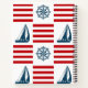 Nautical design with sailing boat and compass decoration on red and white striped background