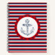Nautical design with hand drawn anchor decoration on blue, red and white striped background
