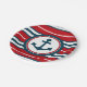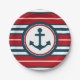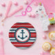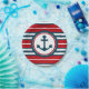 Nautical design with anchor decoration in round shape on red, blue and white striped background