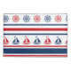 Nautical design with sailing boat and compass decoration on red, blue and white striped background