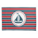 Nautical design with sailing boat decoration in round shape with stars on red, blue and white striped background