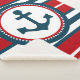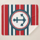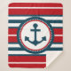 Nautical design with anchor decoration in round shape on red, blue and white striped background