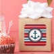 Nautical design with anchor decoration in round shape on red, blue and white striped background