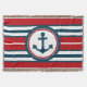 Nautical design with anchor decoration in round shape on red, blue and white striped background
