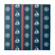 Nautical design with sailing boat and compass decoration on red, blue and white striped background