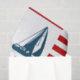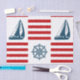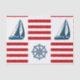 Nautical design with sailing boat and compass decoration on red and white striped background