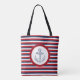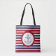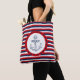 Nautical design with hand drawn anchor decoration on blue, red and white striped background