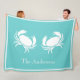 Nautical design with White Crab on Teal Blue Fleece Blanket