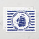 Blue nautical emblem with sailing ship on a striped background | © and ® Bigstock® - All Rights Reserved.