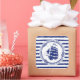 Blue nautical emblem with sailing ship on a striped background | © and ® Bigstock® - All Rights Reserved.