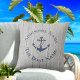 Nautical Family Boat Name Navy Anchor grey wood Cushion