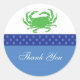 Modern and bright favour sticker. Great for an ocean theme event or beach side party. The unisex design makes it ideal for couple's shower. Features a crab in green with a blue polka dots frame. Airy and nautical look. Add your own wording. Can also be customised for a birthday party or corporate event. Matching invitation available.