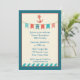 A nautical themed invitation with blue and coral bunting flags with anchor and rope accent, blue frame and coral trim on cream background with subtle stripe pattern. The bottom has a blue wave graphic. Just personalise the text with your party details. Suitable for any occasion, age or gender. Some graphics by Freepix.com