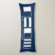 Nautical flags navy blue family name bed decor Body Pillow. Decorative design for children and adults. Elegant gift idea for friends, family, sailor, boat captain, sailing fan, skipper, fisher, daughter, sister, boss, co worker, wedding couple etc. Trendy home decor and bedroom decorations. Add your own personalized name or funny quote. Large decoration cushions with maritime alphabet symbols.