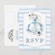 Nautical Floral Blue Stripes Beach Wedding RSVP Postcard