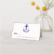 Nautical anchor and monogram framed by a lightened version of patriotic florals: white rose, blush pink peony and light blue. Preppy pink and white stripes for a summer, beach, or destination wedding event.