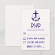 Nautical anchor and monogram framed by a lightened version of patriotic florals: white rose, blush pink peony and light blue. Preppy pink and white stripes for a summer, beach, or destination wedding event.