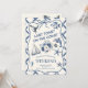 This coastal-inspired design combines watercolor florals with charming nautical elements like a dolphin, sailboat, compass, fish, starfish, and seagull. The elegant navy palette and soft painterly style create a whimsical, ocean-themed aesthetic—perfect for a seaside celebration full of charm and adventure.