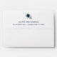 This elegant and trendy wedding envelope is white, with your pre-printed return address on the back in navy blue text and a pink and blue bouquet of watercolor flowers. The inside of the envelope features stylish, blue and white nautical stripes.