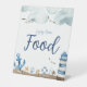 Nautical Food Baby Shower Sign featuring a nautical theme with sea, sea shells, boats, and lighthouse artwork