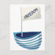 This vibrant nautical-themed illustration features a charming boat with a bold "Freedom" flag. The design captures the essence of adventure and the open sea, perfect for those who love sailing and maritime aesthetics. Ideal for adding a touch of freedom and exploration to any space or product.