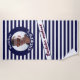 Make a splash at the bachelor party with this custom beach towel! Featuring bold navy blue and white stripes, a space for a favourite photo, and the celebratory text "Bachelor Weekend," it's a fun and practical way to commemorate the groom's last days of freedom. Imagine the group lounging by the pool, each with their own personalised towel. This high-quality absorbent towel guarantees comfortable sun-filled days. Add the groom's name and a memorable photo to create a truly unique and lasting souvenir of the bachelor party. It is the perfect gift for the groom and his best men.