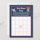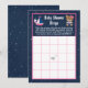 This cute and fun baby shower bingo card features a nautical sailor girl bear, a cute pink bird on a sailboat and a seagull. In the background is a starry night sky. The text combines bold and serif fonts for a stylish and modern look. This is perfect for a nautical themed baby shower.