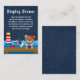 This cute and fun display shower enclosure card features a nautical sailor girl bear on a wooden deck with a seagull and a crab. In the background there is a red and white lighthouse, a cute bird on a sailboat, ocean waves and a navy blue starry night sky. The text combines bold and serif fonts for a stylish and modern look. This is perfect for a nautical themed baby shower.