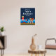 This cute and fun welcome sign features a nautical sailor girl bear on a wooden deck with a seagull and a crab. In the background there is a red and white lighthouse, a cute bird on a sailboat, ocean waves and a navy blue starry night sky. The text combines bold and serif fonts for a stylish and modern look. This is perfect for a nautical themed baby shower.