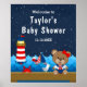 Nautical Girl Bear Red Navy Baby Shower Welcome Poster
