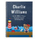 This cute and fun notebook features a nautical sailor girl bear on a wooden deck with a seagull and a crab. In the background there is a red and white lighthouse, a cute bird on a sailboat, ocean waves and a navy blue starry night sky. The text combines bold and serif fonts for a stylish and modern look. It can be personalised with your baby's birth stats, such as name, size, date and time of birth, or if you would like to give it as a shower gift you are able to edit and remove text.
