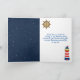 This cute and fun thank you card features a nautical sailor girl monkey on a wooden deck with a seagull and a crab. In the background there is a red and white lighthouse, a cute bird on a sailboat, ocean waves and a navy blue starry night sky. The text combines bold and serif fonts for a stylish and modern look. This is perfect for a nautical themed birthday party.