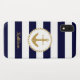 Nautical Gold Anchor Navy Blue And White Stripes Case-Mate iPhone Case