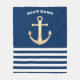 Nautical, Gold Anchor Navy Blue Striped Fleece Blanket