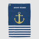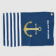 Nautical, Gold Anchor Navy Blue Striped Golf Towel